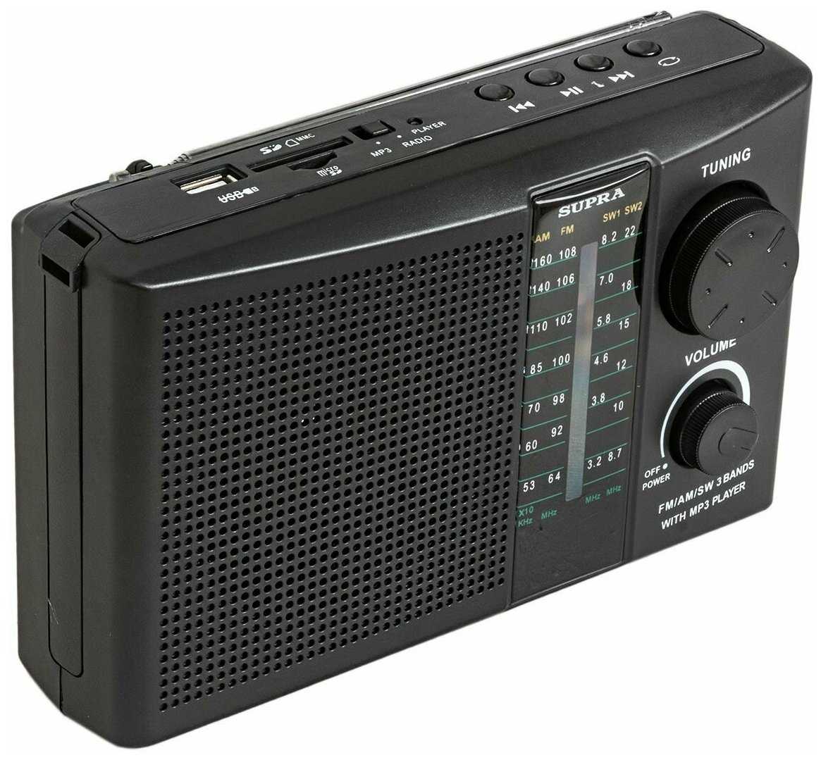 - + Хороший звук. Приятный тембр. Жирный плюс что имеет собственный аккумулятор. Можно смело брать в деревню. Красиво переливается надпись Супра. Как на импортной технике конца 20 века. С него можно послушать свою музычку в формате mp3.