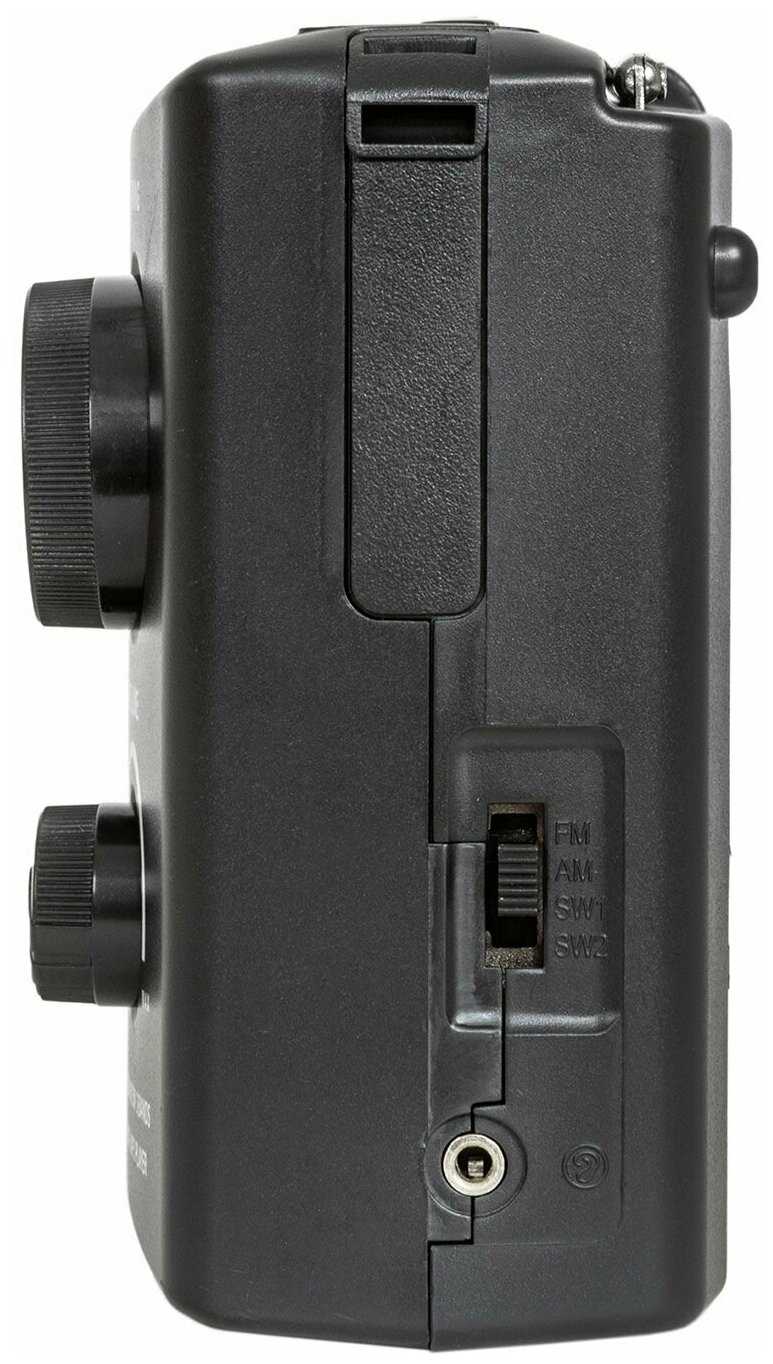 Приёмник может работать от трёх батареек типа D (R20), что обеспечивает очень длительное время автономной работы — по отзывам, на несколько месяцев даже при регулярном использовании. Также присутствует встроенный аккумулятор на 600 мА·ч и солнечная панель для его подзарядки. Однако эффективность солнечной панели невысока, и для полноценной зарядки требуется длительное время на прямом солнце. Важный нюанс: контакты в батарейном отсеке могут окисляться, что приводит к пропаданию питания и сбросу настроек. -