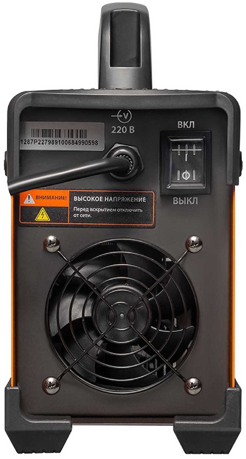 - Корректно функционирует при входном напряжении 160-270 В, сохраняя стабильность дуги даже при провалах в сети.