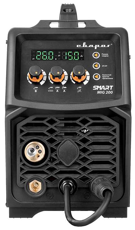 - Дисплей отображает реальные значения тока и скорости подачи проволоки, что повышает точность настроек.