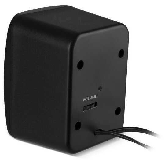 - + Довольно качественный звук за такие то деньги. Динамик сабвуфера расположенный в его нижней части. Хорошая сборка: даже на максимальной громкости и басах корпуса не дребизжат. Строгий дизайн. Возможность проигрывать музыку как с карты памяти SDHC, так и флешки. Кнопка «вкл./выкл.» присутствует. Длинные провода. Не требуют много места.