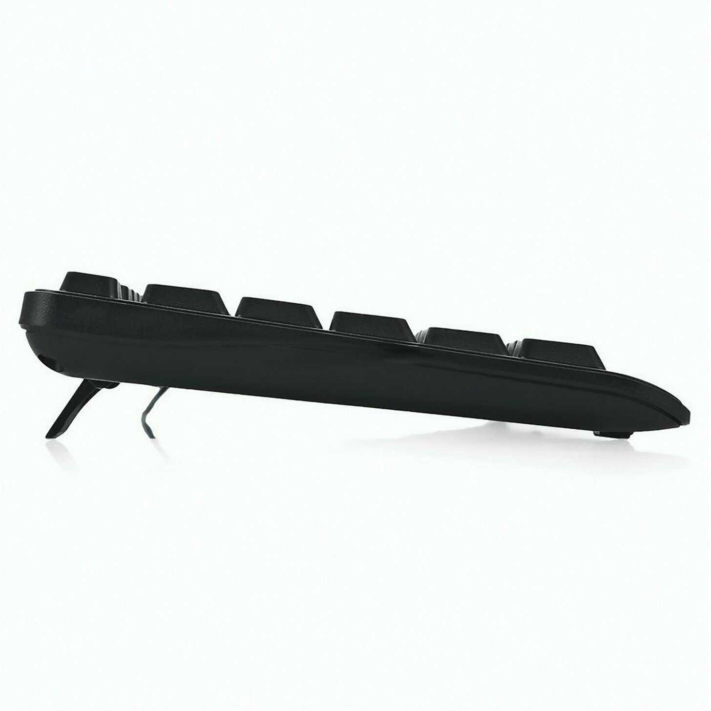 Наклон клавиатуры недостаточен и с выдвинутыми ножками, при этом один край покачивается, а резинки на основании ненадежно держат устройство на поверхности стола.