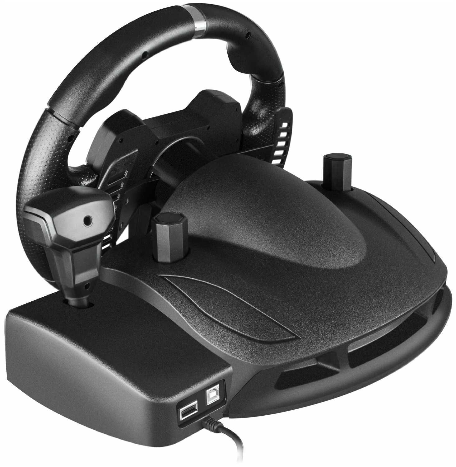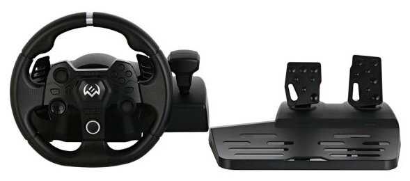 - + У руля есть вибро отдача хотя она не сильная но чувствуется, большой плюс на руле есть стики как на геймпаде,удобно управлять ими,да и крестовина и остальные кнопки тоже норм и функциональные.На вид руль не плох, есть КПП и педали.Ну и цена приятная.