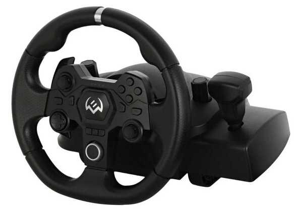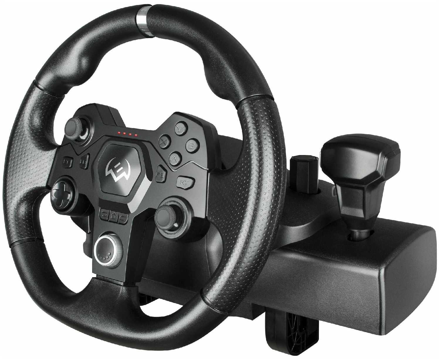 - Регулятор поворотной чувствительности (270° макс.) на руле позволяет адаптировать угол под разные игры без захода в меню.
