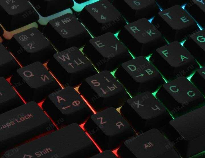 - + Хорошая клавиатура. Не шумит особо при нажатии клавиш и красиво светится разными цветами.