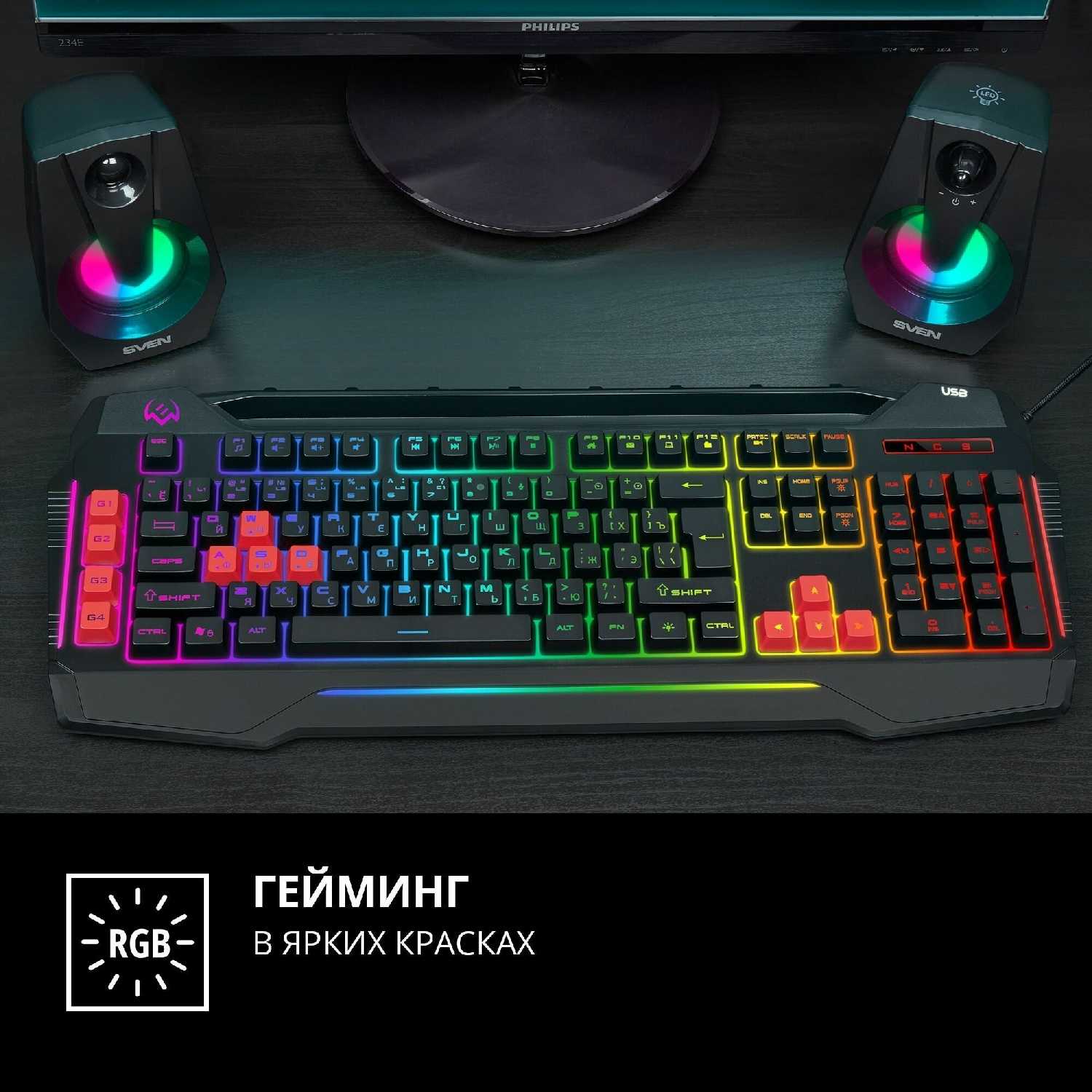 | Комплектация : | Клавиатура SVEN KB-G8800 (макросы, RGB-RGB, USB) (SV-017675) |