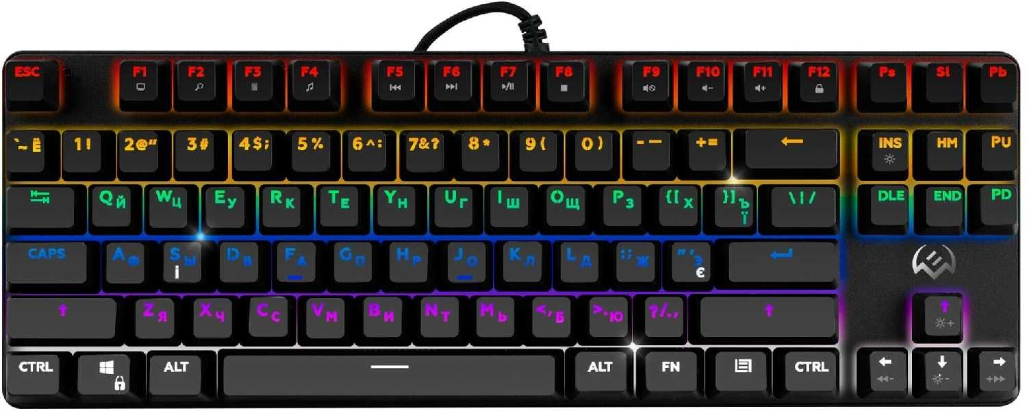 Выбирала игровую клавиатуру, чтобы была с подсветкой не гремела. Эта оказалось самой тихой! Реально, даже пробел у неё не гремит. Но, к великому моему сожалению, через полгода использования подстерлась краска на клавишах(