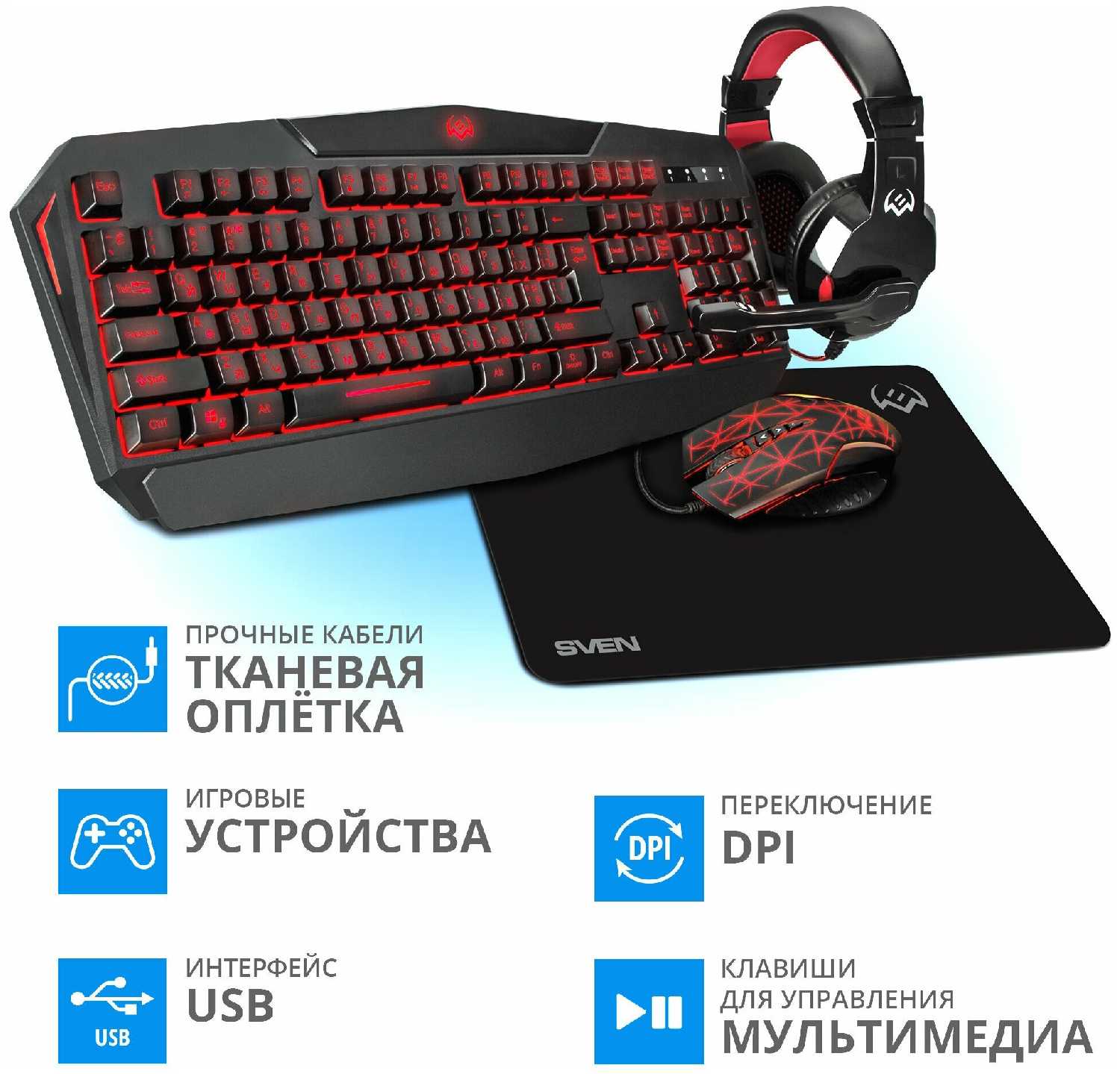 Характеристи SVEN Комплект клавиатура + мышь + гарнитура + коврик (GS-4300)