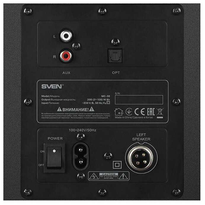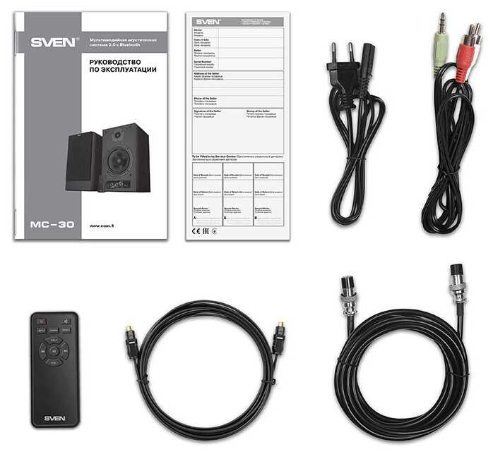 Дополнительная информация : | компьютерная акустика SVEN MC-30, сигнальный кабель 2RCA к mini-jack, оптический кабель, кабель питания, акустический кабель, пду, руководство по эксплуатации, гарантийный талон |