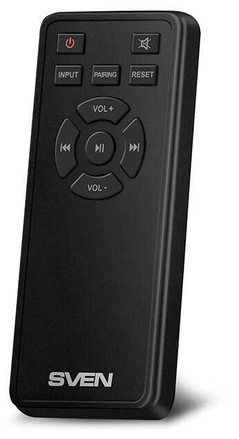 - Пульт позволяет переключать источники, регулировать громкость и отключать колонки.