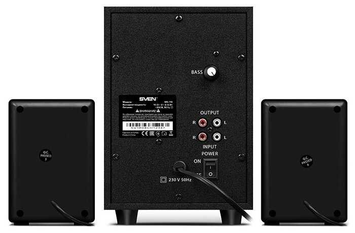 - - Регулировка басов, как и клавиша питания, находятся на задней стенке. Если нет дополнительного способа настройки звука на его источнике (телефон, микшер, плеер, внешняя звуковуха), то неудобно.