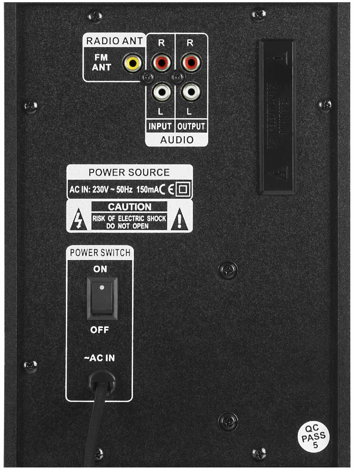 Кнопка выключения находится на задней части сабвуфера, не очень удобно