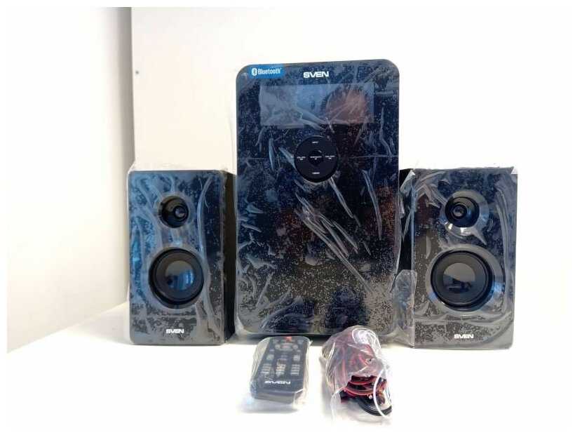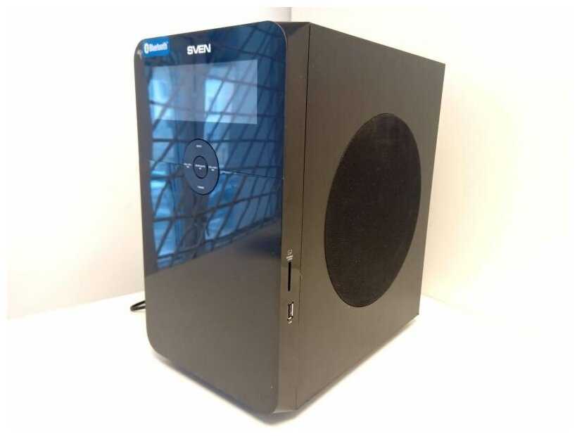 Верхняя часть сабвуфера из пластика, подгонка отвратительная, состоит из нескольких частей декоративная панель, колонки лучше сделаны . На глянце видны отпечатки. Пленка двойная, вторая пленка с надписью bluetooth снимается.