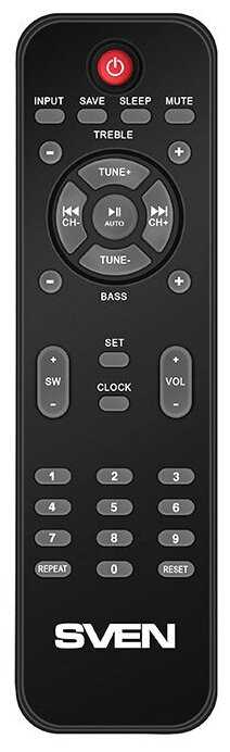 - + Наличие bluetooth. Удобное управление настройками bass, treble, громкость саба, общая громкость. Всё настраивается отдельными кнопками с пульта.