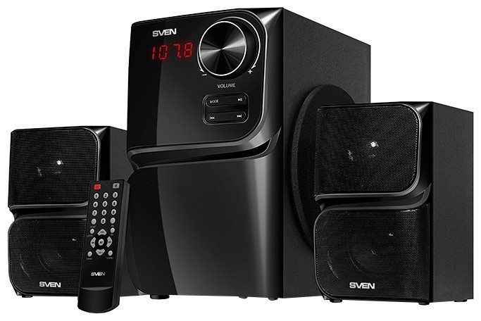 - + Мне очень нравится Sven-овская аппаратура . Для компьютера считаю самое оно.на взыскательное ухо может и есть нюансы звучания, но в общем целом чистый звук, сами колонки очень долго служат(прошлые свеновские спустя 10 лет еще в гараже дорабатывают))), громкие. Плюс удобно что и радио и блютуз. В общем я доволен