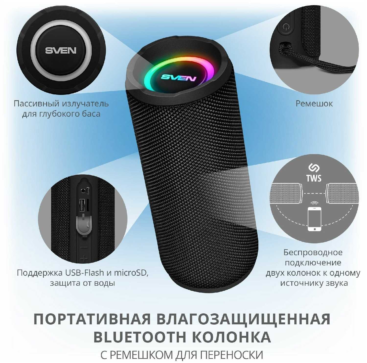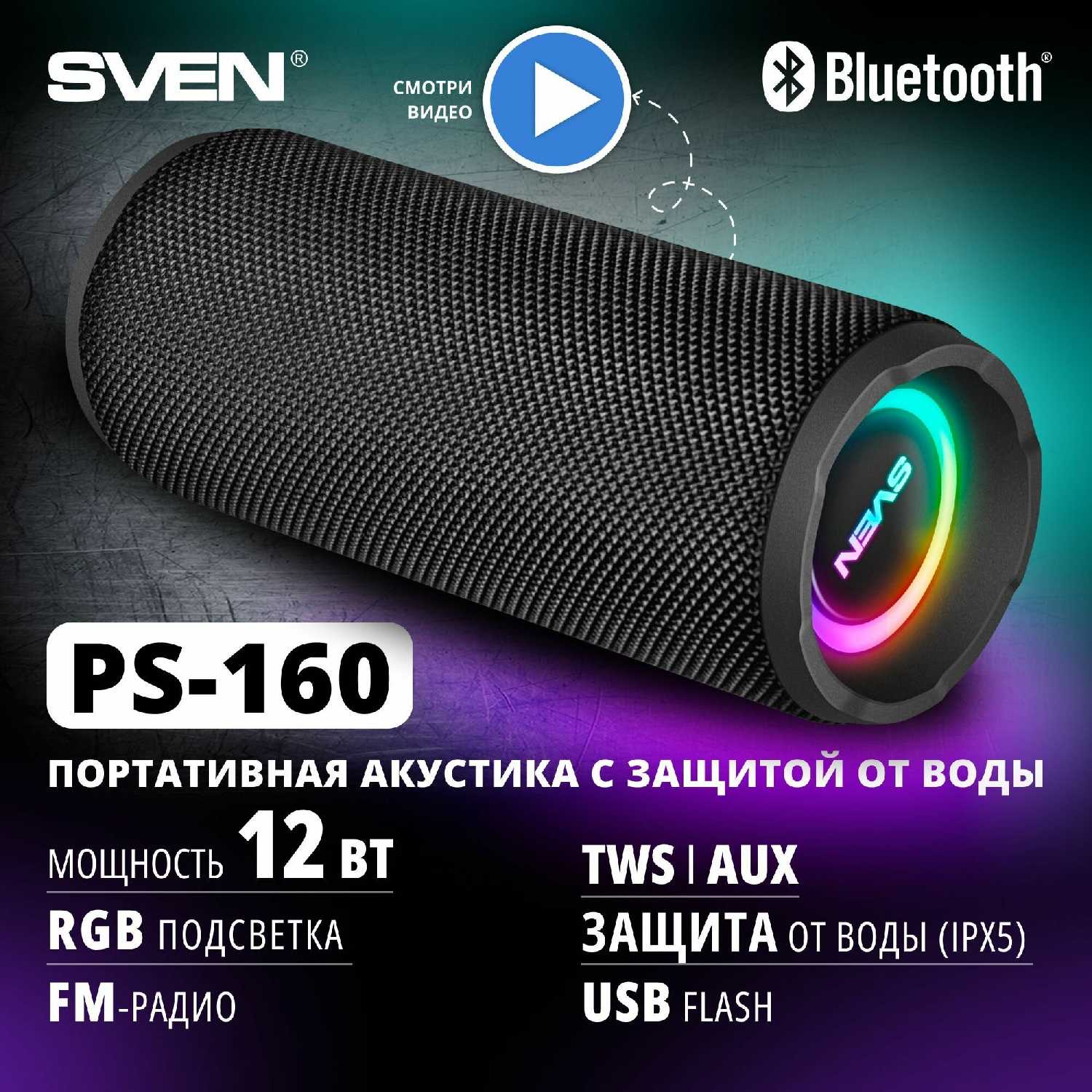 Отзывы о Портативная беспроводная Bluetooth колонка SVEN PS-160 (12 ватт)