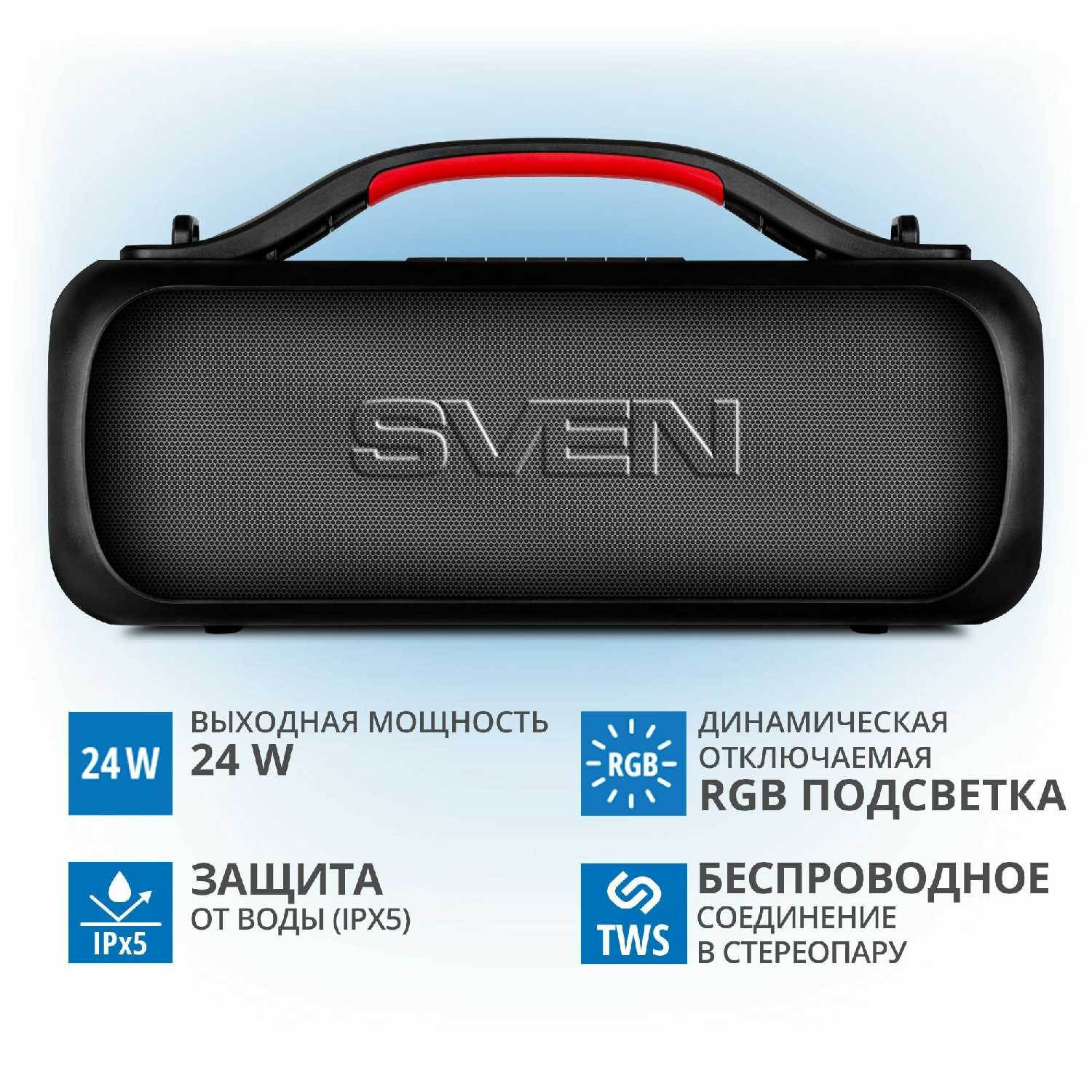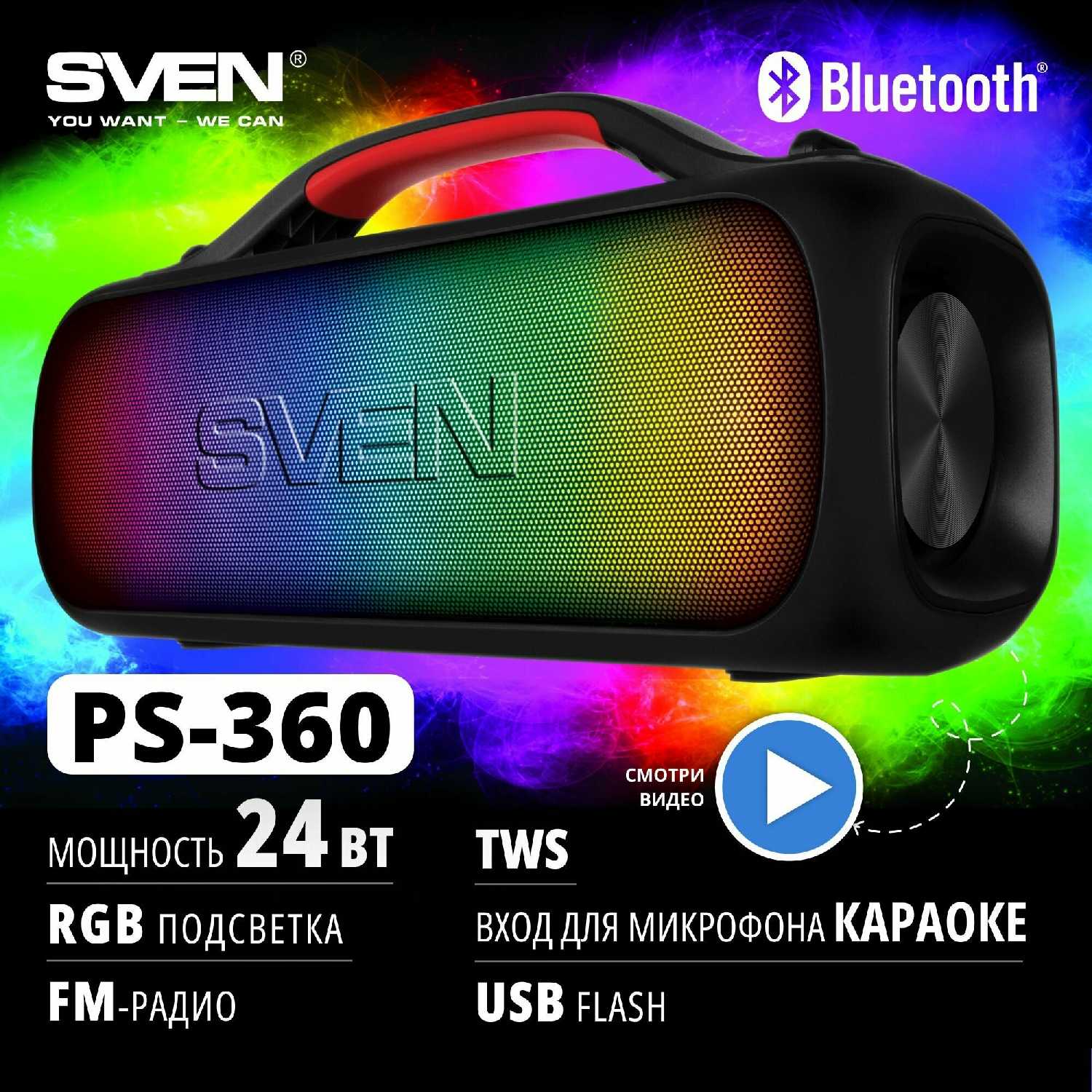 Отзывы о Портативная акустика SVEN PS-360 (2x12 Вт, Waterproof, Bluetooth, FM-радио, USB)