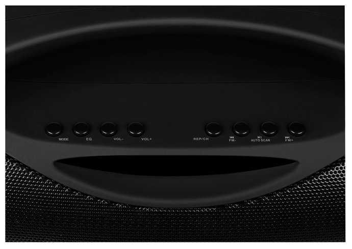 - Пассивные басовые излучатели по бокам корпуса усиливают НЧ-диапазон при громкости выше 60%.