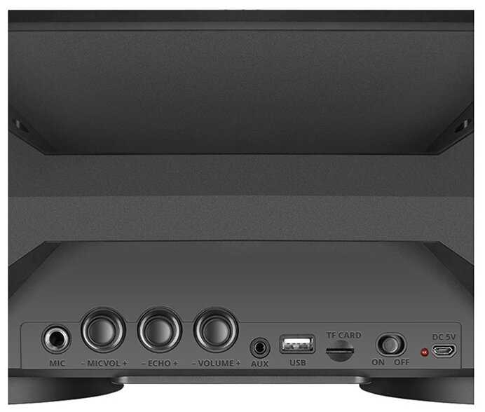 - + Звучание среднее на 4 с минусом. Есть эквалайзер где можно подстроить басы, высокие и нижние частоты. Можно подключать флешки, карты памяти другие устройства по aux и блютуз. Блютуз не всегда срабатывает. Нужно несколько раз включать и отключать колонку . Пластик дубовый и крепкий. При падении думаю не разобьется. При зарядке может работать. Два широкополосных динамика, две пищалки и две дырки фазоинвертора для баса.