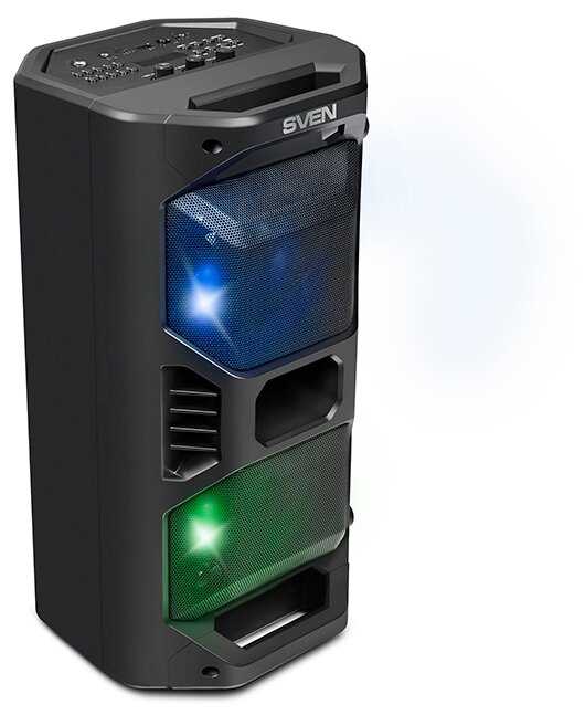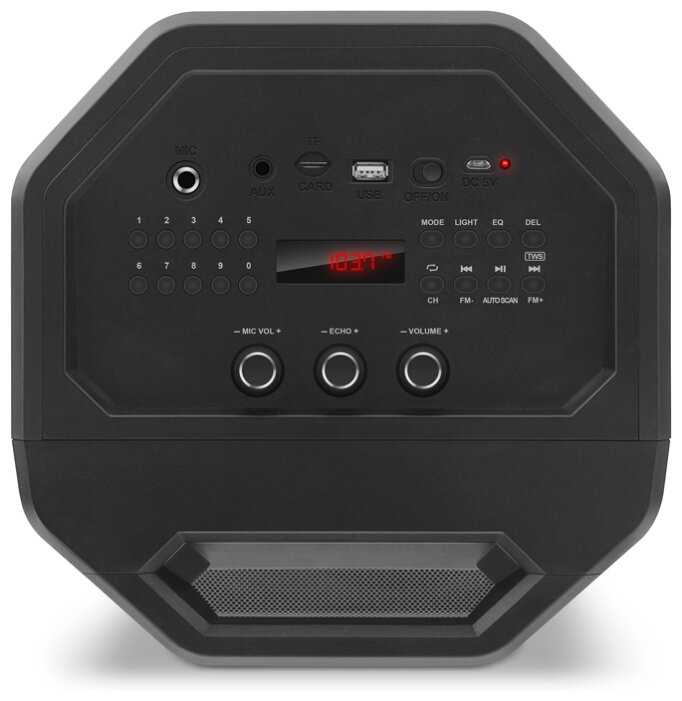 - + В первую очередь, конечно, мобильность, достаточно долго работает без подзарядки, плюс немного цветомузыка, ну и отличное оборудование для караоке.