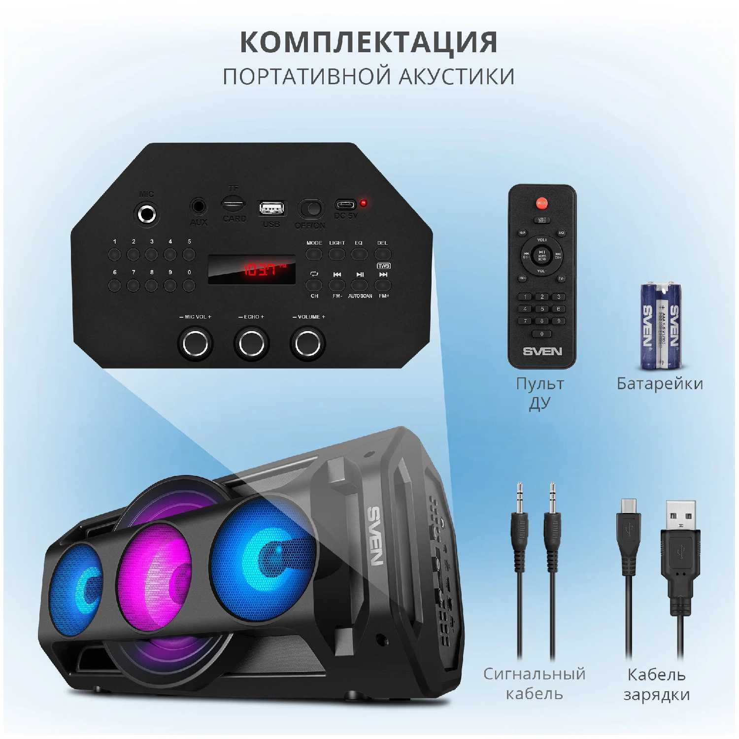звук огонь!!!! заряд держит долго. кто там говорит что басы не глубокие ну это логично, но они ударяют как надо, а если помешение примерно 15 квм басс делается глубокий, раскачивает норм для такой цены и габаритов, а по сравнению с jbl там басы глубокие но не долбят в кровать как sven