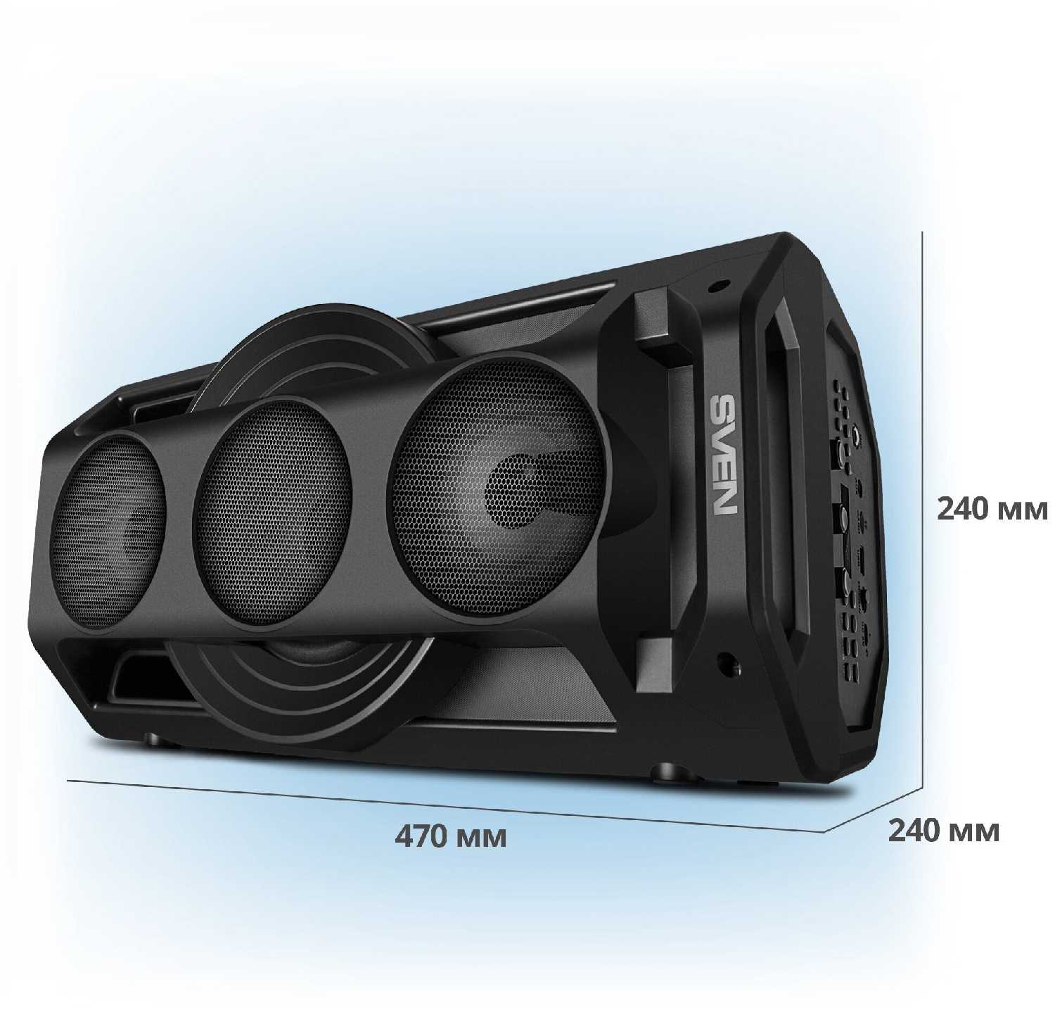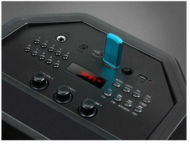 - + Хороший звук, радует блютус, увесистая колонка, прорезиненные ножки, можно ставить вертикально и горизонтально, зарядка от type-c, пока заряжаешь можно слушать музыку, разные режимы подсветки которую можно выключить совсем, неплохо держит заряд, саб по середине, можно слушать с usb 2.0, TF card, Bluetooth, AUX, можно сделать пару с другой колонкой, понятное управление кнопками, ещё и пульт есть с батарейками в комплекте