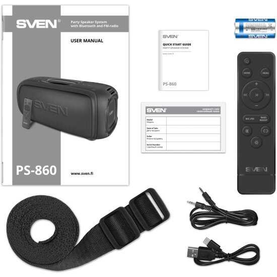 Отзывы о Беспроводная портативная Bluetooth колонка SVEN PS-860 (FM-радио, USB flash, microSD, TWS, пульт ДУ) 100 Вт