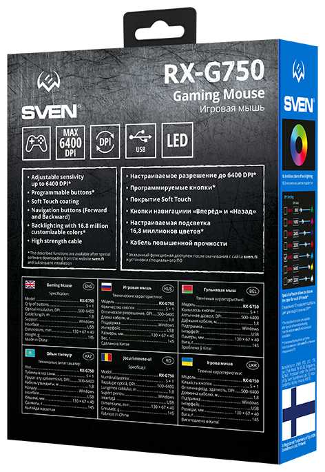 Купил на смену старой, не прогадал, покупкой доволен, отличная многофункциональная мышь, с многозонной динамической подсветкой RGB-подсветкой. Покрытие Soft Touch добавляет приятное тактильное ощущение и не дает мыши выскользнуть из рук. Так же есть возможность отрегулировать разрешения мыши в широких пределах от 500 до 6400 DPI, это позволит подобрать оптимальные значения для любой игры. Порадовала функция создания макросов, настройки чувствительности и нажимное колесико, которое активно не во всех моделях)