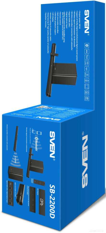37 отзывов пользователей o SVEN SB-2200D (300Вт, DolbyDigital, Bluetooth, HDMI, Optical, USB, беспроводной сабвуфер)
