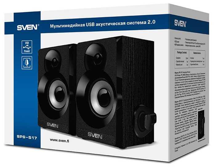 Комплектация : | Колонки компьютерные SVEN SPS-517, 2.0, 6 Вт, питание USB, черные, SV-016180 |