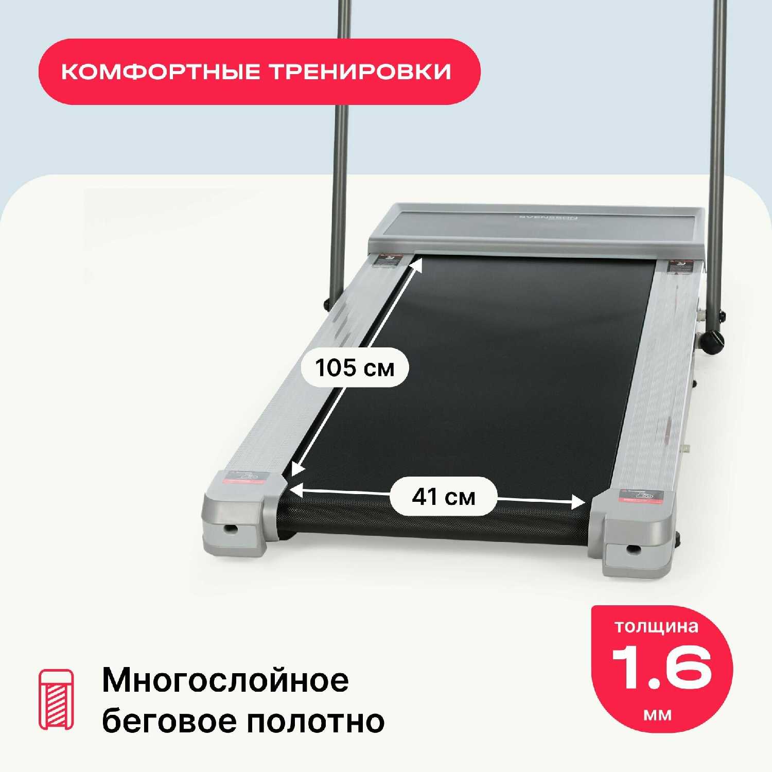 Полотно длинное, но не очень широкое. Мне при росте 164 см в самый раз по размеру, а вы пробуйте. Нравится, что могу сама ее двигать, убрать под кровать. Полотно не скользит под ногами, двигается без рывков.