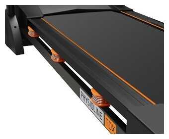Вдобавок ко всему прочему на дорожке установлена классная система амортизации, я насчитал 6 подушечек, изготовленных из силикона. Такая амортизация дает ощущение бега по прорезиненной поверхности на стадионе.