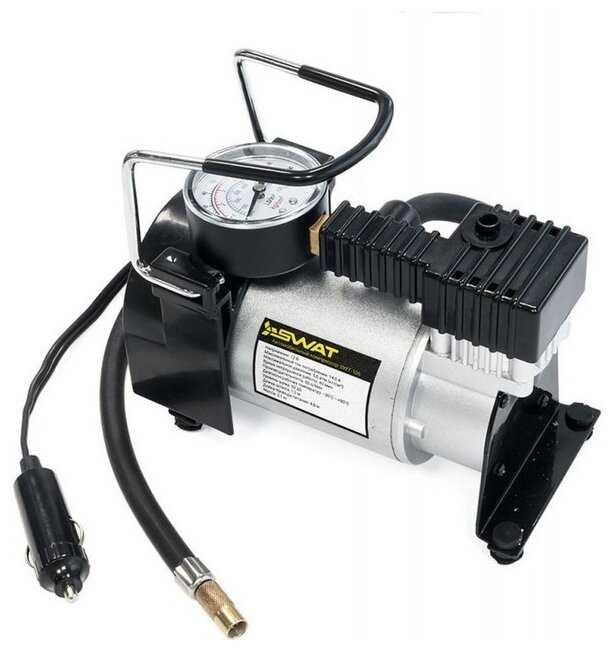 - + Автомобильный компрессор SWT-106 компактный, легкий, удобный, качает быстро, тихо, уверенно. Качественное исполнение, автоматиматическое отключение, удобная сумка под него. Удобная конструкция, позволяет аккуратно уложить. Есть "крокодилы" для подсоединения к аккумулятору компрессора, что не маловажно.