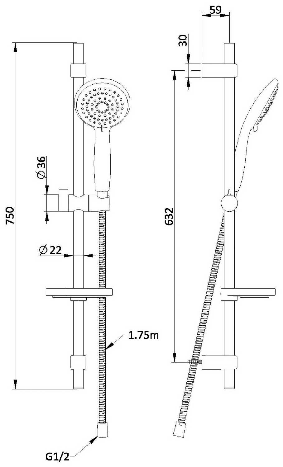 | Комплектация : | держатель лейки, душевая штанга, лейка, мыльница, шланг |