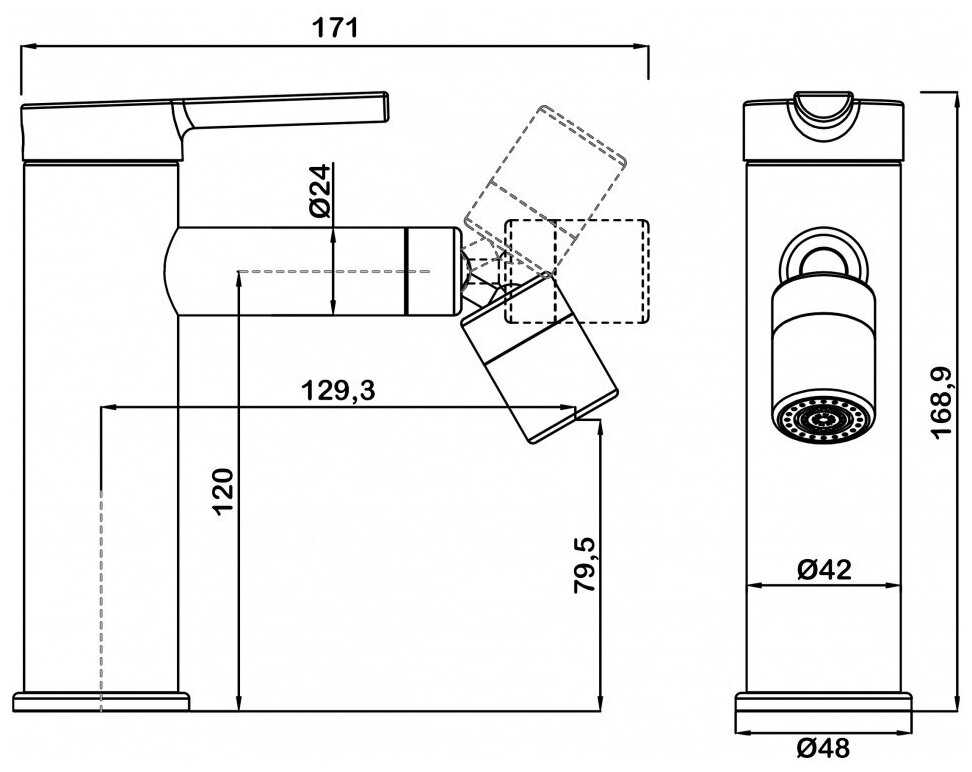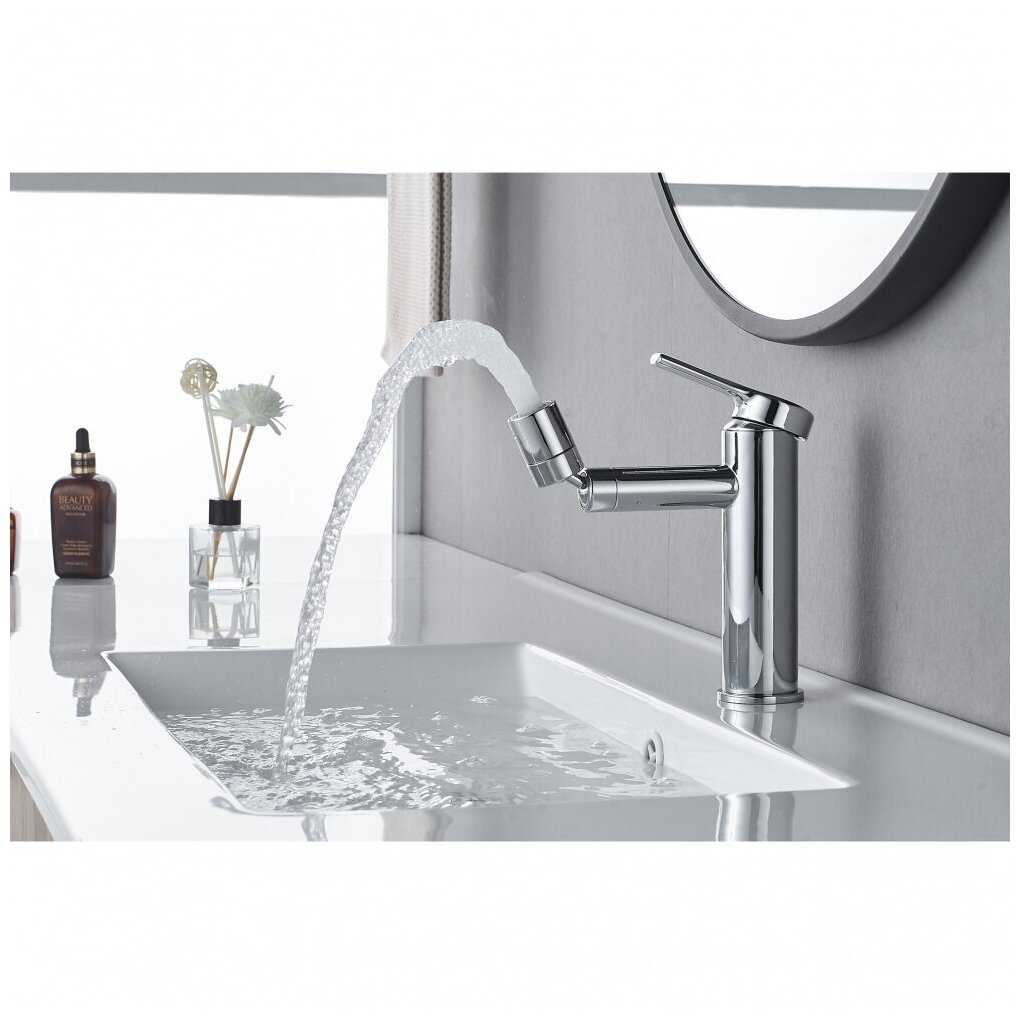 - + Поворотный излив, крепление без использования ключей