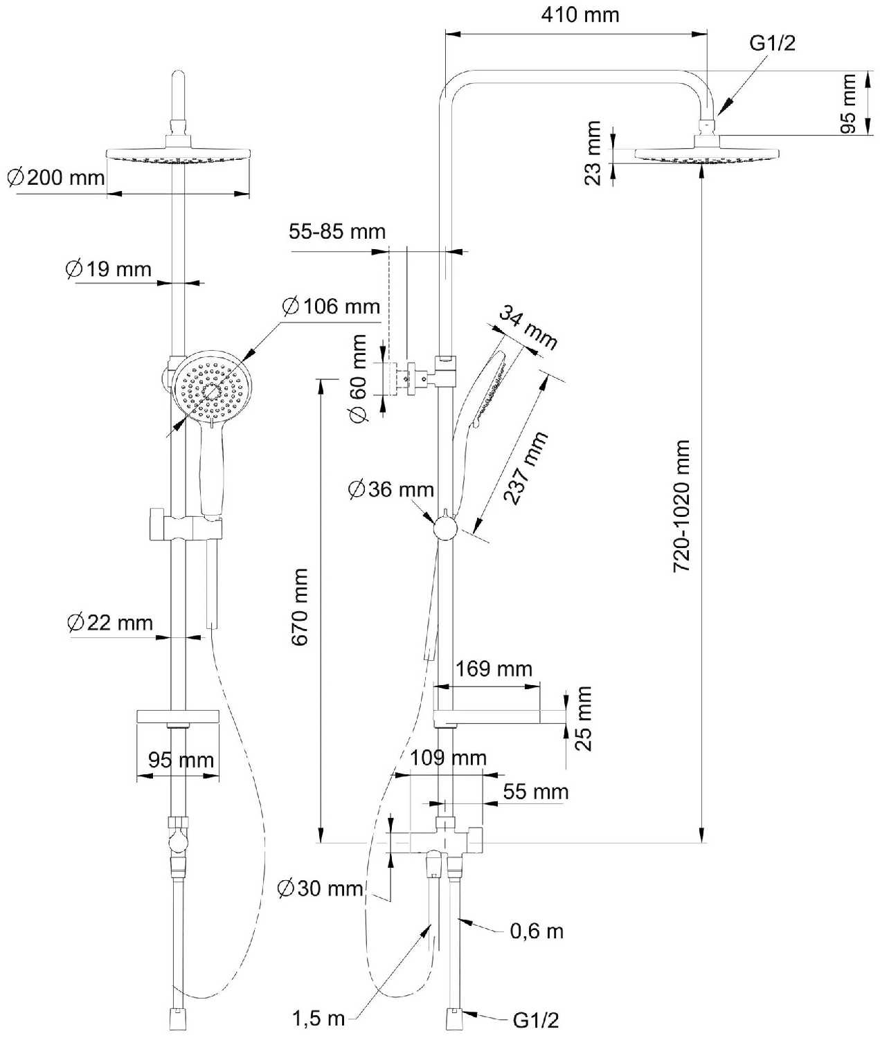 | Дополнительная информация : | диаметр верхнего душа: 200 мм, регулировка штанги по высоте 970-675 мм |