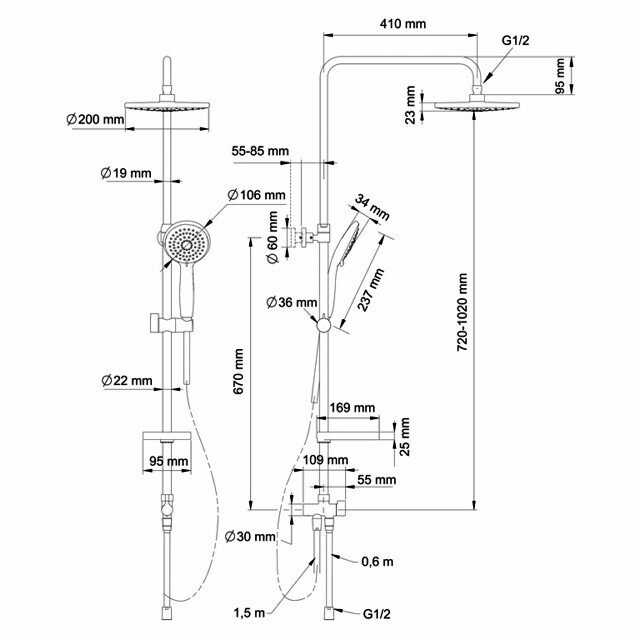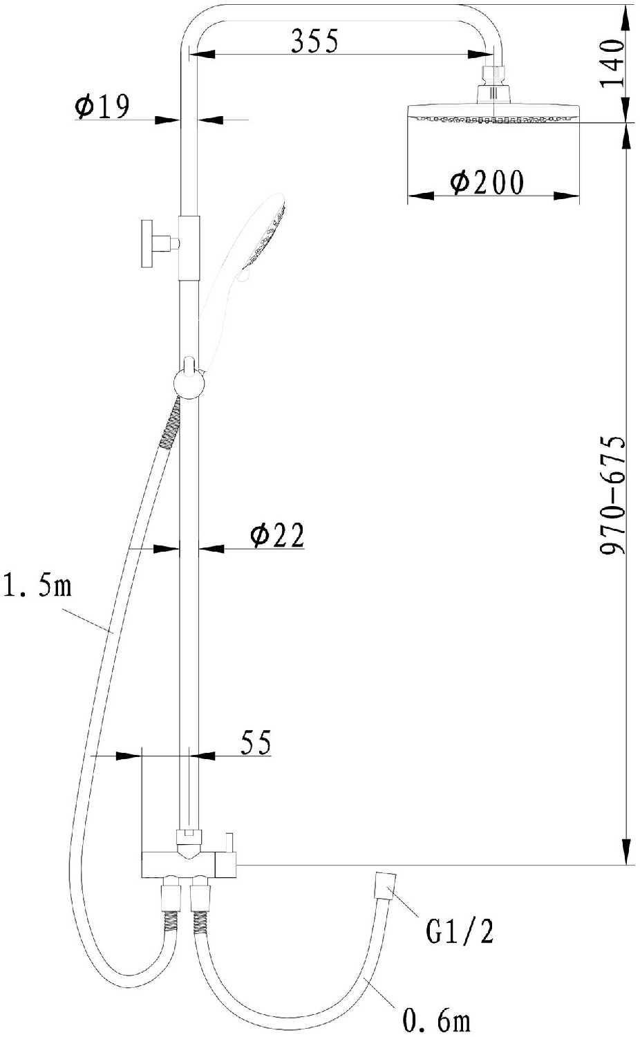 Высота стойки для душа : | 970 мм |