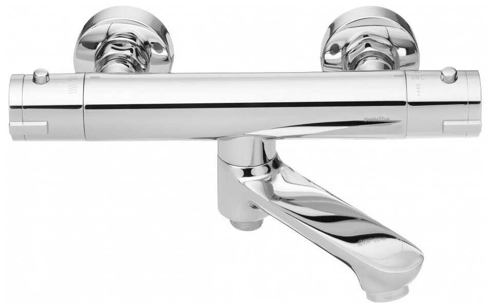 - + Поворотный излив, поддержка установленной температуры при помощи термостата, функциональность. Термостатический ограничитель для температуры и быстрое время реакции на изменение давления и температуры.
