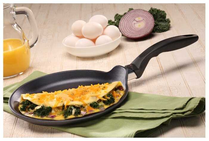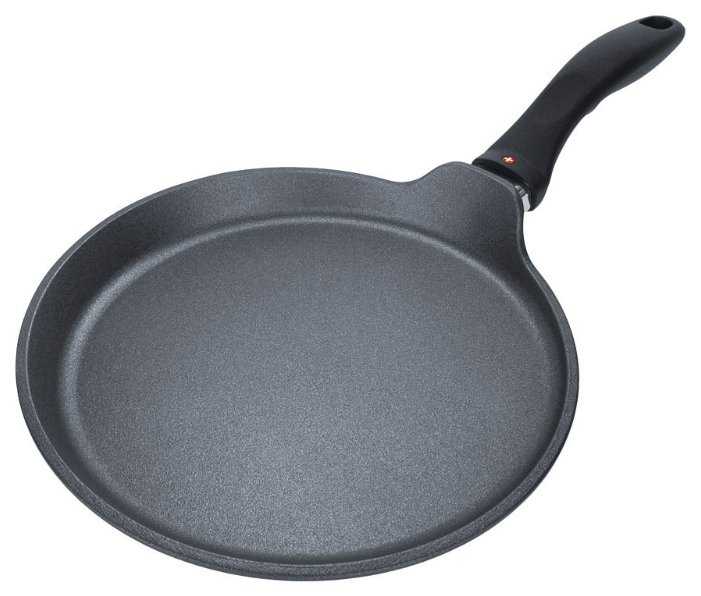 - + Увесистая блинная сковорода, блины, омлеты получаются отличными! Ничего не пригорает, превосходное покрытие, взял еще две скороды данной марки и не нарадуюсь!