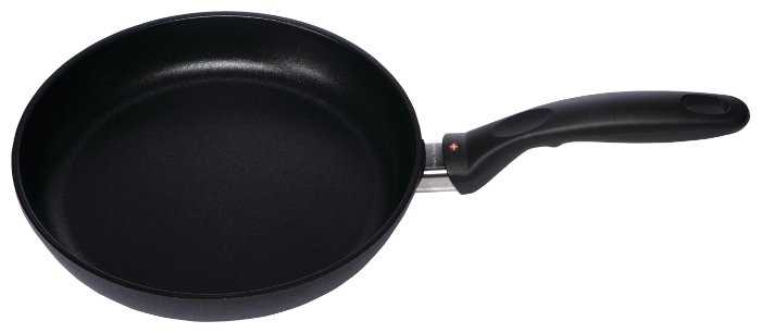 - + Очень ровно прогревается на индукции; покрытие превосходное, ничего не пригорает.