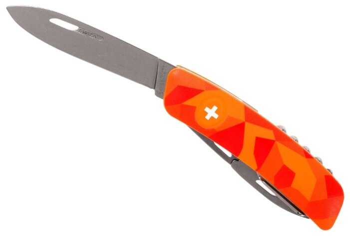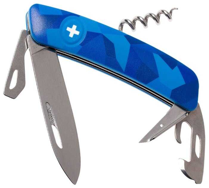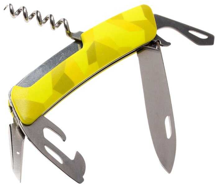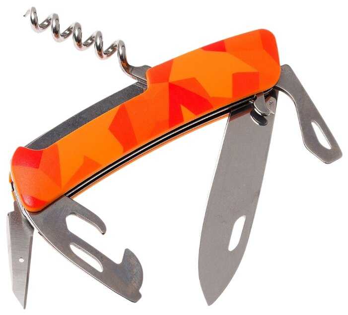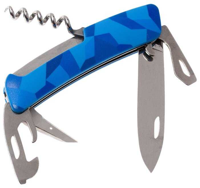 Инструменты (функции) : | лезвие шило/кернер с ушком для шитья открывалка для бутылок плоская отвертка №3 инструмент для сгибания проволоки консервный нож плоская отвертка №1 штопор пинцет |