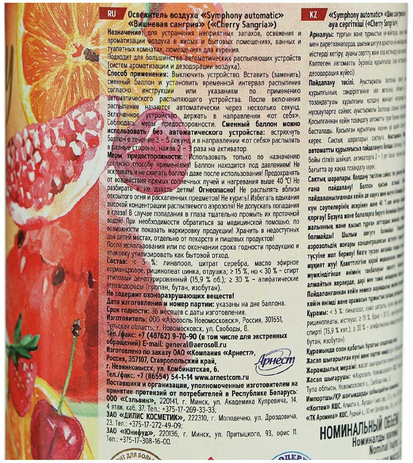 9 отзывов пользователей o Symphony сменный баллон Вишнёвая сангрия, 250 мл