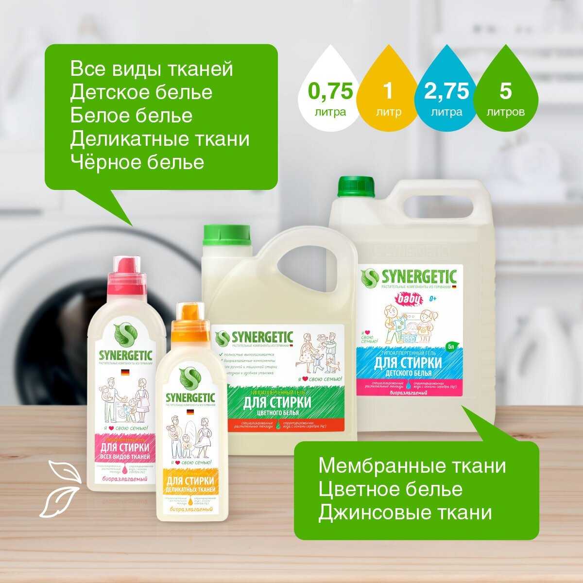 Гель наиболее эффективен для хлопка, синтетики и смесовых материалов тёмных расцветок. Он не повреждает структуру ткани, сохраняя её мягкость без обязательного применения кондиционера. -