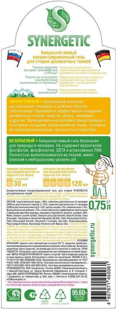 Целевая аудитория и сравнение с аналогами. Гель Synergetic для деликатных тканей идеально подходит для аллергиков, для тех, кто ценит экологичность и нейтральный запах белья после стирки, а также для владельцев дорогих и требовательных к уходу вещей из шерсти, шелка, кашемира, бамбука и тонких тканей. По сравнению с обычными гелями масс-маркета, пользователи видят его преимущество именно в бережном отношении к волокнам, гипоаллергенности, отсутствии навязчивого запаха и экологичном составе. Он выигрывает у специализированных дорогих средств за счет хорошего соотношения цены и качества. Однако, как отмечают, для очень сложных, застарелых пятен на деликатных вещах он может потребовать большего количества или уступить узкоспециализированным пятновыводителям. Его ключевая сила – в безопасном и эффективном повседневном уходе.