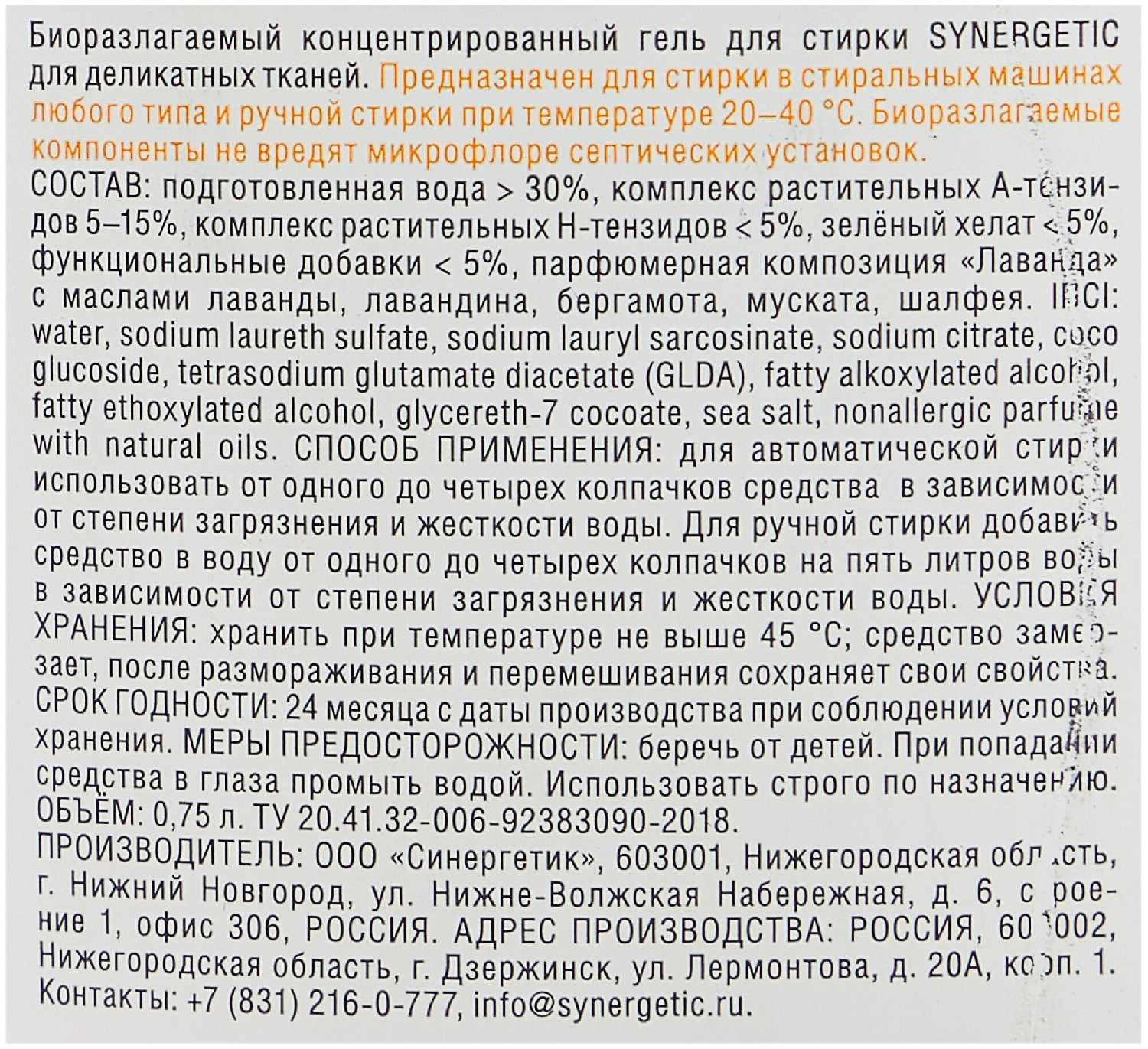 | Не содержит : | ЭДТА, искусственные красители, фосфаты, фосфонаты |