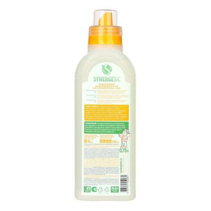 Гипоаллергенный состав без отдушек и мягкая формула делают гель пригодным для детского текстиля. Отсутствие остаточного запаха и раздражения на коже подтверждается отзывами родителей. -