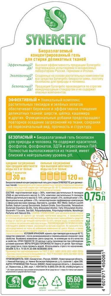 Гель работает как в ручном, так и в машинном режимах, включая программы для шерсти и деликатных тканей. Для оптимального результата рекомендуется следовать дозировке на упаковке – превышение нормы не повышает эффективность. -