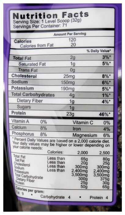- 23 г белка на порцию, чистый сывороточный концентрат, не денатурированный, минимальная химия.