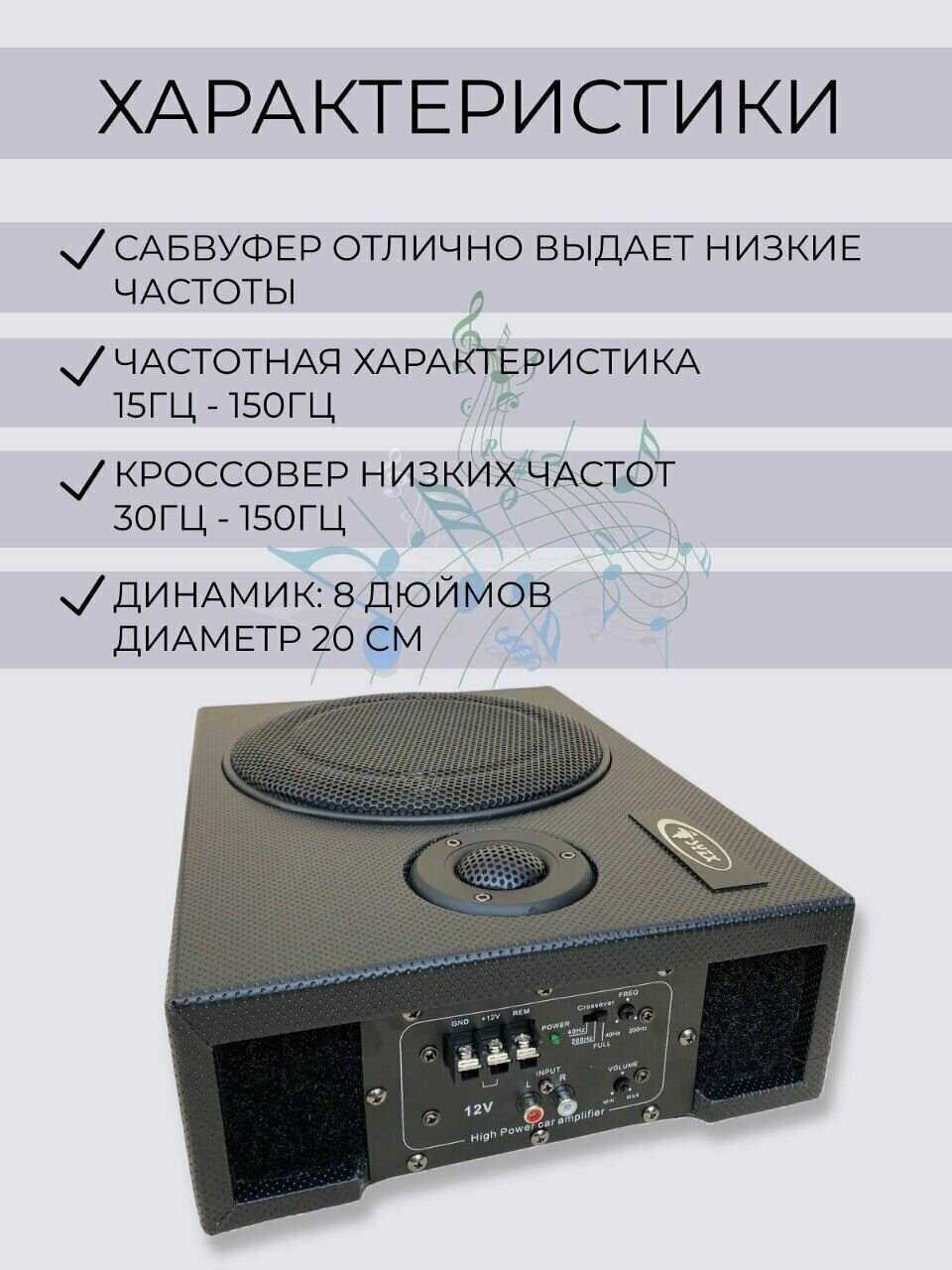 Комплектация : | Активный Автомобильный сабвуфер syzx V-US80 под сиденье и провода для подключения |