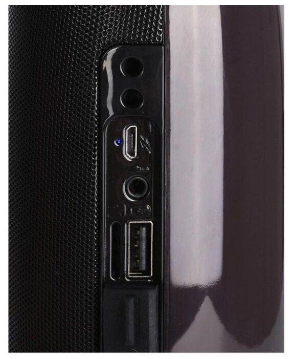 - + Невысокая цена, большое количество возможностей этой колонки: это радио, цветомузыка, подсветка, возможность подключения к смартфону колонки, подключение флешки, наушников и карты памяти и все это в небольшом устройстве. Имеет несколько режимов цветомузыки и возможность ее отключить.